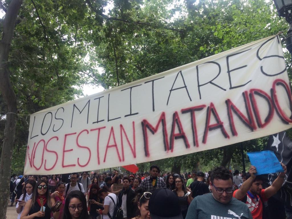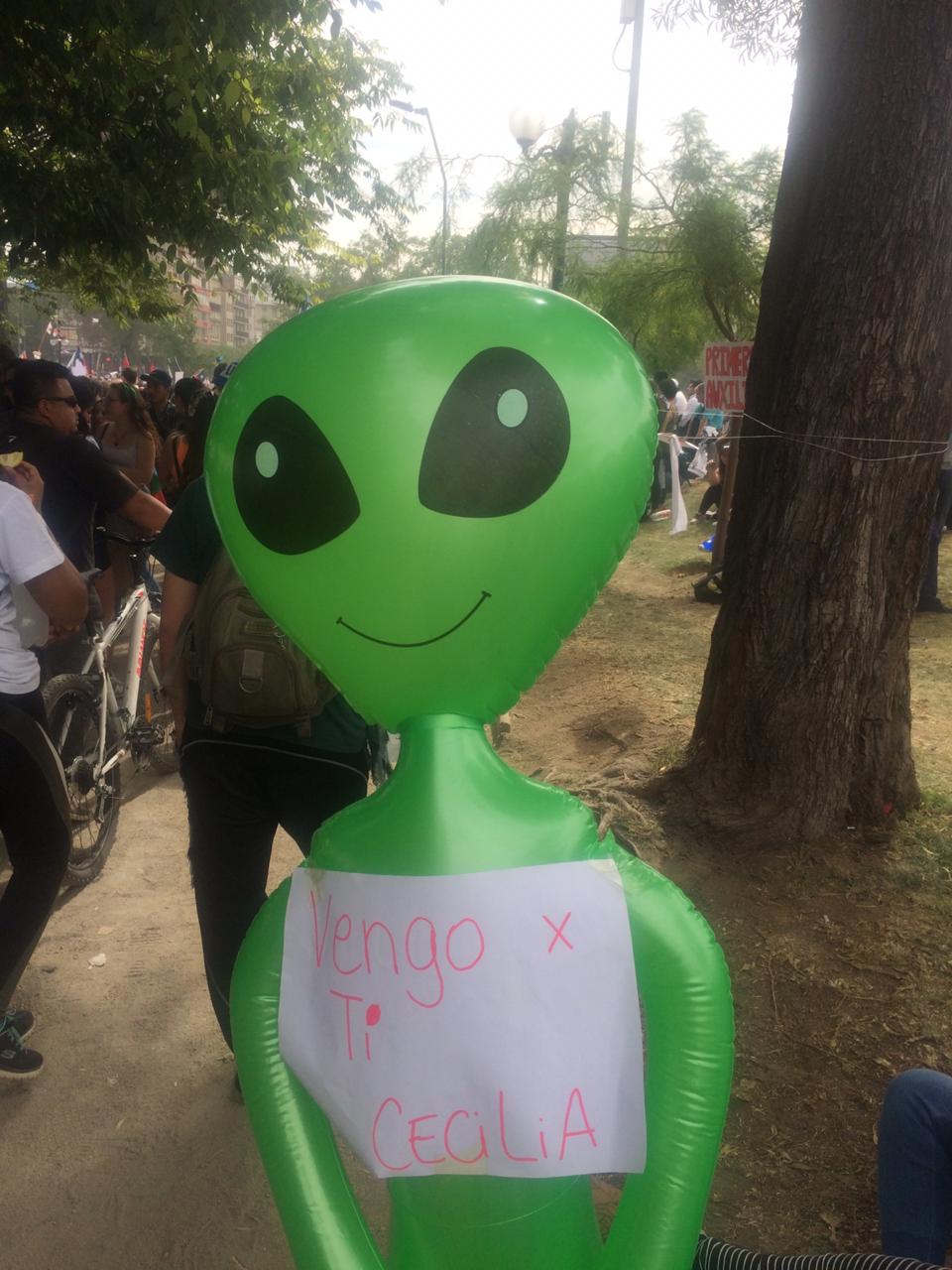 ¿Pero a qué se dedican los alienígenas? ¿Qué exigen, qué es lo que cantan? Para empezar, la mayoría de estas fuerzas viven con un sueldo que no se corresponde con la realidad, con los costos de la realidad en este planeta. Alegan que la constitución que los reúne proviene de tiempos dictatoriales y que no asegura un estado de bienestar ni nada parecido, sino un extractivismo a mansalva, pocas defensas para los trabajadores, un desentendimiento del estado respecto a lo público, en fin, un abandono. También gritan al cielo con sus trutrucas y cornetas al paso de los helicópteros de la policía y de los militares; estos alienígenas están más que superados con las continuas violaciones a los derechos humanos que han ocurrido en este falso “estado de emergencia”, en donde sin legitimidad alguna se ha secuestrado, se ha acosado, se ha golpeado y se ha asesinado: las fuerzas armadas de este país no han aprendido absolutamente nada desde 1973, absolutamente nada, mientras los medios difunden el encarcelamiento de un conscripto se negó a participar de esta cacería. En fin, señora Cecilia Morel, venga, acérquese, porque la palabra que más va a ver y escuchar es “dignidad” y eso es algo que su clase y los partidos de todos los colores le han perdido el rastro, como quien mira fijamente a una estrella y luego la pierde al pasar de una nube.